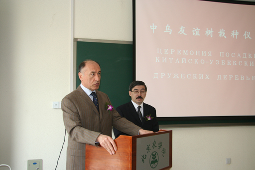 全体师生员工,向尊敬的乌兹别克斯坦共和国驻华大使优苏波夫先生和夫人,以及前来参加植树的外国朋友和来宾表示热烈的欢迎和崇高的敬意。