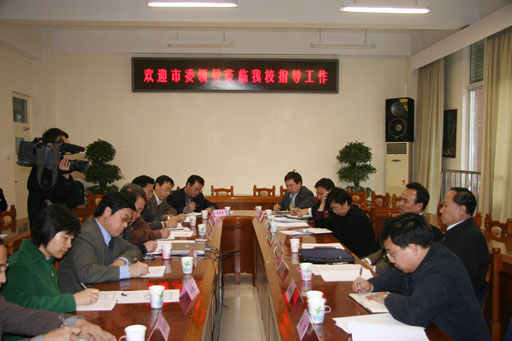 在教学楼B座209会议室,龙新民同志听取了党委书记孙尧东及院长王有年的汇报。