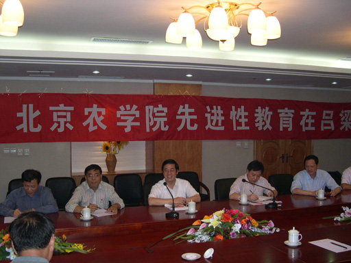 到达吕梁的,全体团员稍作休息后,随即召开了“世俱杯sjb官网先进性教育活动在吕梁”座谈会,全体党员和非党员专家出席了座谈会。会上,院长王有年再次重申和明确了开展先进性教育与吕梁科技咨询有机结合的重要意义。与会人员结合专业和吕梁现状,热烈讨论了如何以实际行动在此次科技咨询活动中满腔热忱地实践共产党员先进性。大家认为,开展保持共产党员先进性教育活动,党员首先要了解和认识我国的国情,了解中国共产党在艰苦条件下为中国革命胜利做出的牺牲和贡献,尤其需要了解为中国革命做出积极贡献的革命老区,了解革命老区人民身上的不屈不挠、艰苦奋斗的精神。科技扶贫团临时党支部听取了大家的意见。提议党员在进行科技咨询的同时,要就近进行先进性教育,深刻理解“三个代表”重要思想。