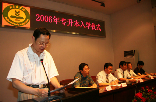 副院长杜晓林发表讲话,他要求大家把职业技术学院的好作风、好精神带到本科学习中,为促进学校的发展做出自己的贡献,并祝愿大家学业有成,顺利取得学士学位,争取考上研究生。