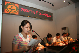 2006年6月30日上午10:30时,继2006届毕业典礼之后,世俱杯又隆重举行了2006年 “专升本”入学仪式。大会由范双喜处长主持,副院长杜晓林、学生处长孙亚利、宣传部部长程春生、教务处副处长杨剑平、沈文华出席了入学仪式,并为每位专升本学生发放了录取通知书。