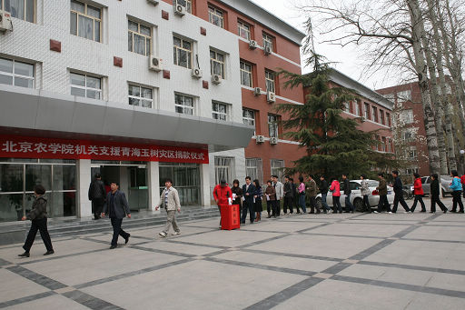 4月20日下午3:30分,学校在办公楼前举行机关工会教职工抗震救灾募捐活动,拉开了学校抗震救灾募捐活动的序幕。党委书记王慧敏,校长王有年,党委副书记高东、高喜军,副校长杜晓林、郑一淳、姚允聪,纪委书记朱生利带头捐款,学校机关干部踊跃为玉树地震灾区捐款。在捐款仪式上,党委书记王慧敏要求全体师生要大力弘扬“一方有难、八方支援”的精神,积极支援灾区抗震救灾。