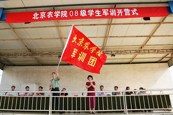 6月28日早8:30, 2008级学生军训团1881名同学在怀柔群英昊学生军训基地训练场,隆重举行开营仪式。