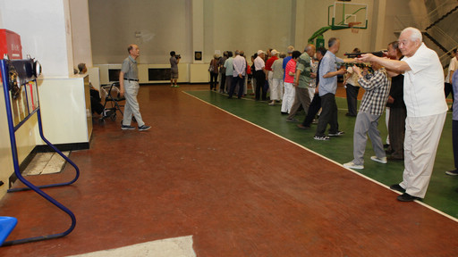 此次趣味运动会根据老年人的身体特点,安排了益智性、趣味性较强的数独、飞镖、套圈、射击、钓鱼等项目。参赛的老同志或举标投射,或持枪射击,或专注垂钓,或抛圈套物,或认真填独,非常投入。有几位老同志在家人的陪伴下,坐着轮椅、拄着拐棍坚持参加了活动。