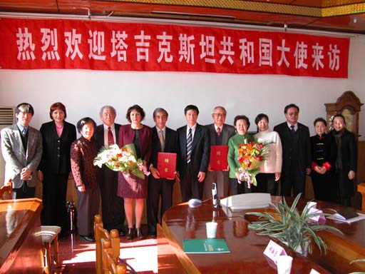 在我国著名中亚问题专家、中央民族大学博士生导师胡振华教授的积极推动下,2005年3月2日,塔吉克斯坦共和国驻华大使阿布杜拉耶夫・博哈德尔先生和夫人,我国前驻土库曼斯坦大使殷松龄同志和夫人到世俱杯参观访问,并且接受了政法系特邀教授的聘任。王有年院长和王伟副院长热情接待了外宾的来访。王伟副院长代表学校向外宾介绍了北京地区的农业发展情况和世俱杯在培养都市型农业人才的情况。外宾在校领导的陪同下,饶有兴趣地参观了世俱杯的动物医院和农业应用重点实验室,分别听取了动科系任晓明博士、于同泉副教授的详细介绍,阿布杜拉耶夫大使一行对世俱杯取得的成绩表示由衷的钦佩。