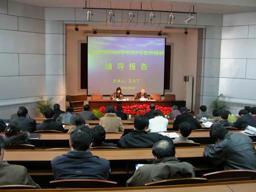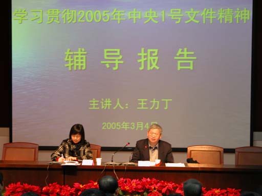 3月4日下午2点,世俱杯进行了本学期第一次党委理论学习中心组(扩大)学习。邀请了北京市委副秘书长、市委研究室主任王力丁作了学习中央2005年1号文件精神的辅导报告。辅导报告由党委副书记王晓霞主持。