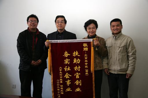 党委书记王慧敏、校长王有年在与两位村官进行交流时表示,母校永远是大家的坚强后盾,会继续秉承对毕业生“扶上马,送一程”的原则,一如既往地支持他们的工作,帮助他们更好地为京郊服务,为都市型现代农业服务。希望他们能够与农民朋友充分合作,确实做到生力军与主力军的有机结合,这样才能更好、更快地帮助农民致富。同时,希望他们能够坚持深深地扎根在基层,长期地为农村、农民服务。