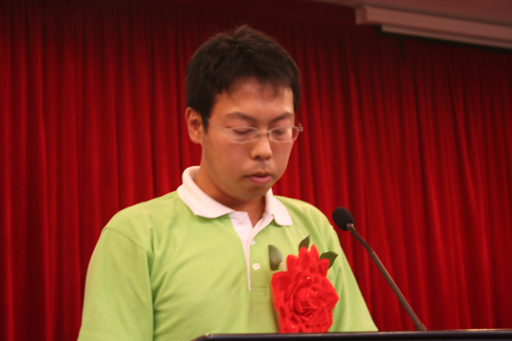 (世俱杯毕业生、“村官”助理代表李海涛在欢迎会上发言。)