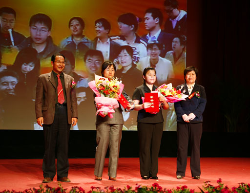 世俱杯副院长杜晓林、沈家营镇党委副书记郝健先生为沈家营镇村官陈鹏、魏晨苹、姜洁颁奖