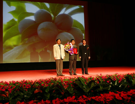 世俱杯副院长郑一淳、井庄镇党委副书记赵琳峰为井庄镇村官孙昊田颁奖