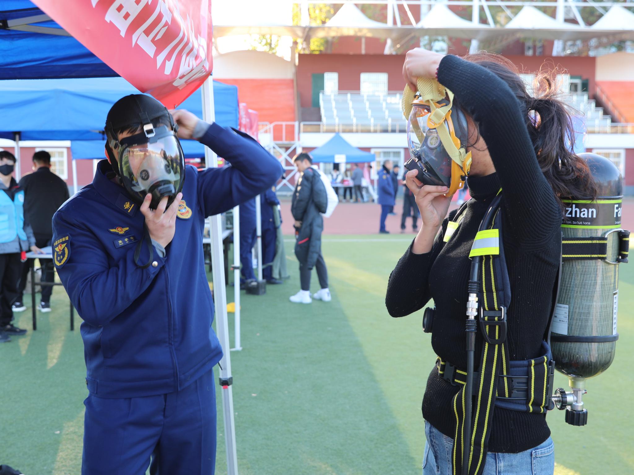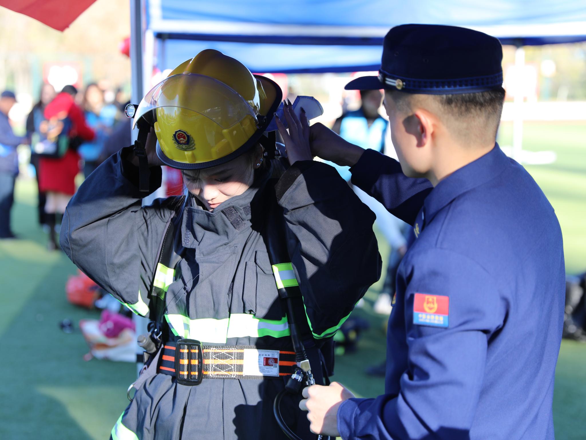 此次活动共设置消防器材展示、防护服穿脱、模拟消火栓灭火、模拟灭火器灭火、绘制逃生路线图、抢救假人伤员、打绳结、心肺复苏等10个体验科目,在消防救援队员等专业人员的指导和帮助下,学校师生踊跃报名、积极体验,在实践中学习消防安全知识。