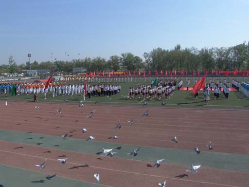 白鸽在会场上空飞翔