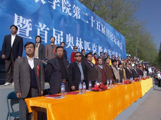 主席台领导向国旗行注目礼