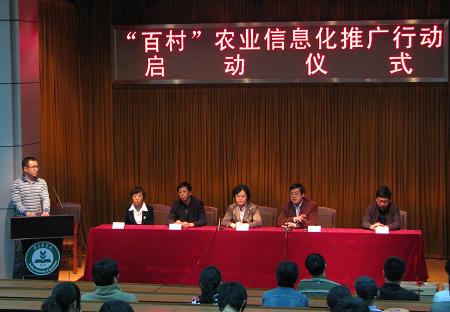 2010年5月10日,“百村”农业信息化推广团的启动仪式在学校图书馆报告厅举行。党委书记王慧敏、校长王有年、党委副书记高喜军、副校长姚允聪出席会议,计算机与信息工程学院党总支书记闫晓军主持会议。党委书记王慧敏、校长王有年为推广团授旗,并同党委副书记高喜军、副校长姚允聪、计算机与信息工程学院院长王玉洁共同为推广团赠送设备器材。