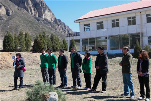 石京龙滑雪娱乐有限公司杨丽娟经理致欢迎词:“植树造林,创造低碳生活是一件很有意义的活动,希望学校和企业以后可以举办更多这样的活动。”