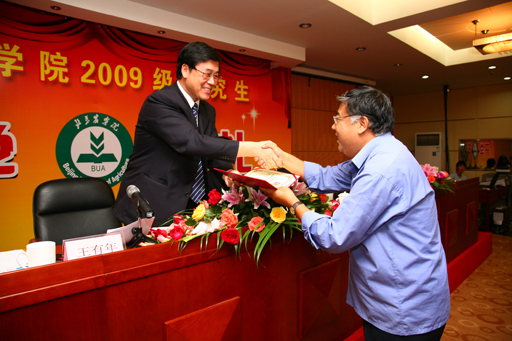 校长王有年发表了热情洋溢的讲话。他首先代表全校师生员工向163名研究生表示热烈的欢迎和祝贺,向刚受聘为世俱杯研究生教学督导、研究生导师及其他农科院的同仁们,表示衷心的感谢和亲切的问候。
