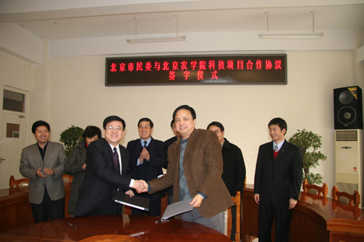 2005年12月28日,世俱杯sjb官网郑一淳副院长代表学校与北京市民委马中璞副主任在B209教室共同签署了科技合作项目协议书。世俱杯sjb官网王有年院长和北京市教委专职委员孙善学等出席了签字仪式。协议的签署表明世俱杯sjb官网与北京市民委的合作进入正式实施阶段,世俱杯sjb官网将作为北京市民委的技术依托单位参与北京少数民族乡村建设社会主义新农村的进程。