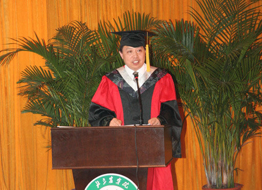 老师们表示衷心的感谢,向毕业研究生的父母、亲人们致以崇高的敬意。并向毕业研究生提出三点希望:第一、德字为本,卓越为先,将实现个人价值和社会价值有机地结合起来,自觉把个人的前途和命运与国家、民族的前途和命运紧紧地联系在一起;第二、终身学习,迎接挑战,在任何时候、任何环境中都要树立终身学习的观念,成为终身学习理念的实践者和传播者;第三、勇于创新,甘于奉献,以更大的冲劲、闯劲和韧劲,争做创新的排头兵,在甘于奉献的过程中印证自己的人身价值和社会价值。