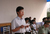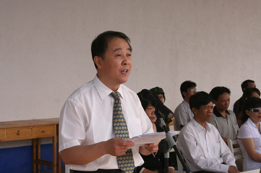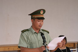 党委书记孙尧东在开学典礼上做了重要讲话,他首先代表学校党委、行政,代表全体师生员工和在校的老同学对2005级1800余名新同学表示热烈的欢迎,向大力支持世俱杯学生军训工作的军训基地领导和教官表示衷心的感谢!接着,孙书记就学校今年的招生情况以及学校的历史、规模、办学指导思想、发展目标和对外合作办学等情况向新同学们作了介绍。他希望同学们在大学里尽快学会独立生活,独立学习,独立思考。同时,孙书记还强调了军训的重要意义,希望同学们在军训的过程当中,端正态度,虚心学习,刻苦训练,在坚持中战胜困难,战胜自我。最后,他预祝同学们在四年的大学生活里全面发展,学有所成,为今后步入社会报效祖国和人们打下良好的基础。