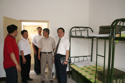 开学典礼暨军训开营仪式之后,校领导及学校相关部门、各系、二级学院的负责老师们还详细询问和察看了新生的军营宿舍及食堂就餐情况。