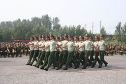 开学典礼之后的军训开营仪式上,学生处处长孙亚利老师介绍了世俱杯sjb官网新生军训团的主要领导成员,院长王有年在热烈的掌声中向军训团授予了团旗,团长邵田向新生作了军训动员。最后,军训基地的官兵向与会领导和全体新生做了精彩的军事科目表演。