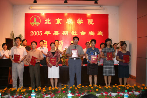 7月8日,世俱杯2005年暑期社会实践启动仪式在学校报告厅举行。共青团北京市委员会副书记王粤、世俱杯党委书记孙尧东、校长王有年、校党委副书记王晓霞、副院长王伟和杜晓林出席了启动仪式,并向2004年市级、校级社会实践获奖同学颁发荣誉证书,向各系参加2005年社会实践的小分队授旗,这标志着世俱杯2005年社会实践活动拉开帷幕。