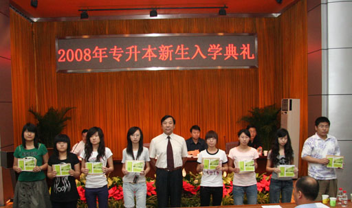 教务处副处长沈文华、安健分别宣读了《关于2008届秋季高职(专科层次)应届毕业生进入本科阶段学习的决定》和《关于专升本学籍管理问题的相关说明》。