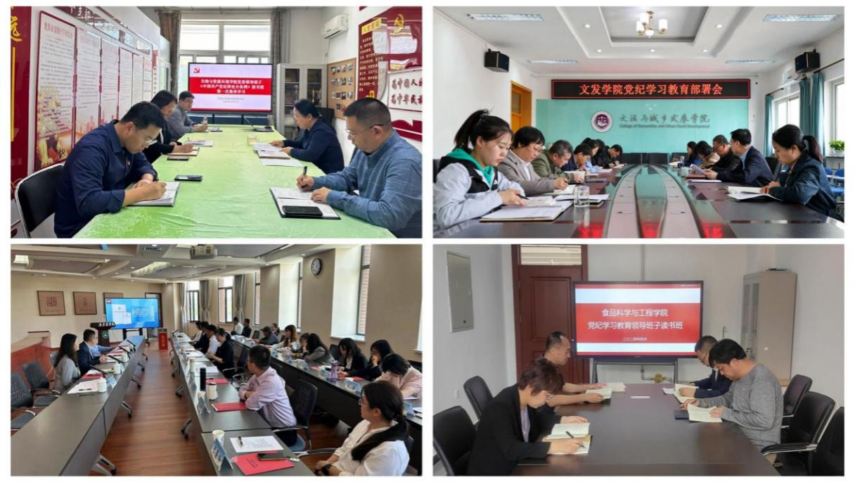学校各二级党组织在学校党委坚强领导下,迅速对党纪学习教育相关工作进行安排部署,组织党员、干部认真学习《条例》,教育引导党员、干部准确掌握主旨要义和规定要求,通过集中学习、领学导学、分组共学、逐条研学、案例深学等形式,组织师生党员聚焦《条例》深学细悟,使学习党纪的过程成为增强纪律意识、提高党性修养的过程。截至目前,学校各二级党组织领导班子开展交流研讨30次,各基层党支部共开展《条例》学习127次,组织主题党日活动60次。