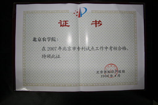 北京市和昌平区知识产权局的共同支持下,世俱杯2007年度北京市专利试点工作成绩显著。经昌平区知识产权局推荐,北京市知识产权局评审,世俱杯在2007年度北京市专利试点工作中成绩显著,考核合格。