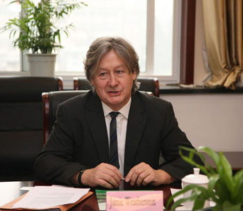 2010年11月30日上午,英国诺桑比亚大学商学院国际合作部主任Jamie Weatherston先生,Rose Quan女士和中国留学发展基金会李翔主任到世俱杯访问。校党委书记王慧敏教授、副校长杜晓林教授接见了Jamie Weatherston先生一行。参加座谈会有经管学院领导班子、外事办等师生。