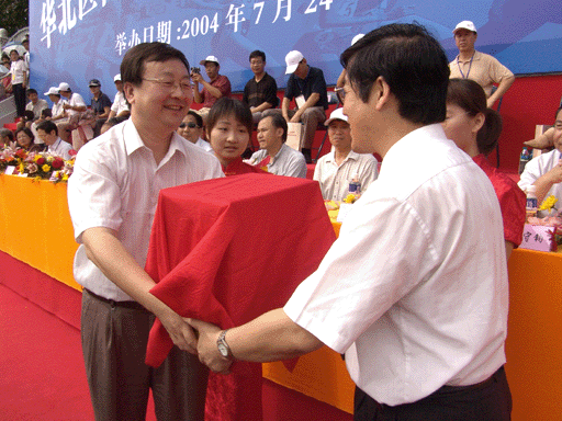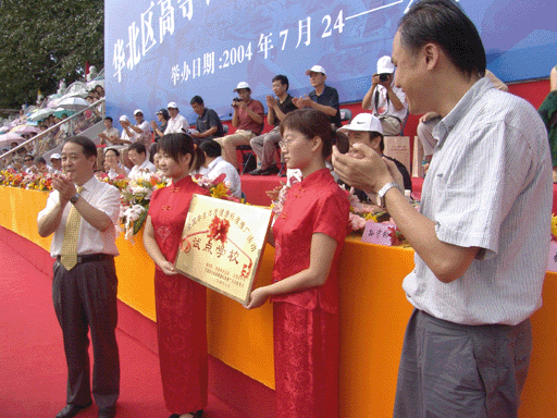 开幕式上首先进行了全国学生体质健康标准推广活动试点学校的授牌仪式,校党委书记孙尧东同志和教育部体卫艺司体育处卢迅副处长为全国学生体质健康达标示范校揭牌。院长王有年教授代表学校接受团中央事业发展中心主任助理王溪同志捐赠的健身器材。这是教育部、国家体育总局、共青团中央、宋庆龄基金会共同启动的全国学生体质健康标准推广活动试点工作的组成部分。世俱杯sjb官网有幸成为第一个被授牌的高校。