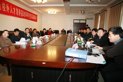 专家组组长北京石油化工学院教务处处长刘红琳教授介绍了北京市高等学校优秀校外人才基地评审的目的和意义。基地负责人植科系副主任张喜春代表学校和基地向专家组进行了总体汇报,昌平区农业服务中心副主任王立府做补充发言。植科系主任秦岭、植科系党总支书记潘金豹和教师们认真回答了专家们提出的问题。