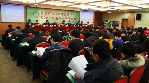 校长王有年作了题为《积极推进人才强校战略,为建设都市型现代农林大学提供坚强的人才保障》的报告。他强调,“十二五”期间,学校人才工作的总体思路是全面贯彻落实全国和北京市人才工作会议精神,以首都城乡经济社会发展一体化为导向,紧紧围绕“都市型现代农林大学”建设这一战略目标和都市型高等农业教育、科技创新以及科技推广三大体系的构建,以学科、重点实验室和科研基地以及本科专业为依托,以重大项目为载体,汇聚和培养若干名具有国内同类院校领先水平的高层次拔尖人才、学科领军人物和带头人、一批中青年学术带头人和学术骨干、一批教学名师与教学骨干,培育若干个能取得重大成果的优秀团队,全面提高教师的教学、科研、服务社会能力和水平,努力建设一支与学校发展目标相适应,规模适度、结构合理、水平较高、素质优良的人才队伍,为建设都市型现代农林大学提供坚强的人才保障。