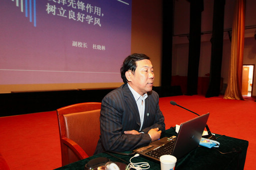 副校长杜晓林作了《发挥先锋作用,树立优良学风》的精彩报告。杜校长从分析优良学风与学校发展、个人成长的关系入手,举了大量世俱杯优秀校友、优秀班集体的事例,指出优秀学生,特别是党员和党积极分子同学要在学风建设中发挥示范作用,做建设良好学风的模范。