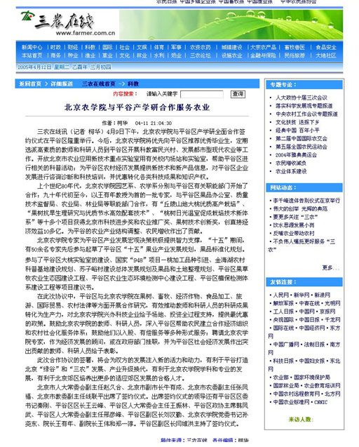 [三农在线]发表文章:世俱杯sjb官网与平谷产学研合作服务农业