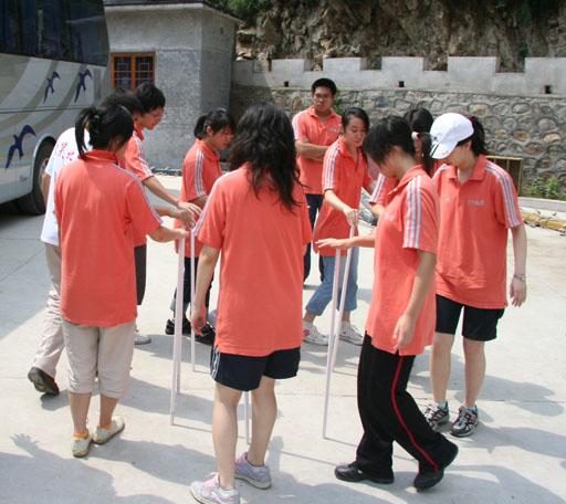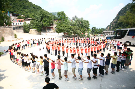 在下午的培训中,同学及老师们参与了惊险刺激的挑战活动,缅甸桥,电网,合力过桥等等。活动中,不光是对自我的挑战,还有加强了学生们的集体荣誉感和培养了团队协作的精神。让学生及老师们提前感受到奥运的激情。学生及老师攀登上团队毕业墙后,意味着素质拓展训练的结束。