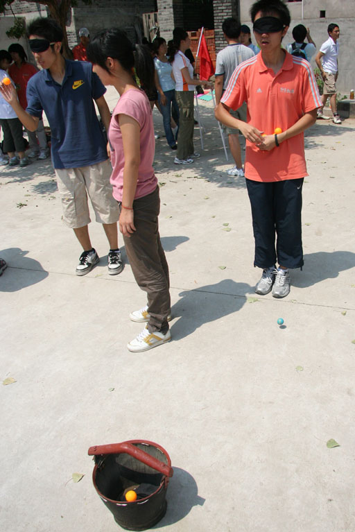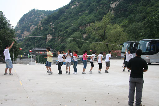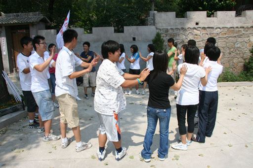 抵达双龙山,感受连绵不断的山脉带来的震撼。老师和学生要在进行挑战与竞争。在培训教练的安排下,世俱杯志愿者分为三队,分别是朝阳一队,朝阳二队,朝阳三队;学生会代表为一队,组成“团队之星”;由团委书记杨宝东,8位代表各系的老师构成“非常8+1”团队。比赛尚未开始,五支队伍分别选出了队长,秘书,制作队旗及定口号。素质拓展培训活动是各人挑战,更是集体挑战。5队进行有趣的“挑战NO.1”的比赛,“挑战NO.1”分为四个挑战项目,分别为盲人投球,跳绳,不倒森林,激情拍掌。