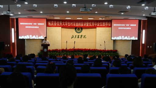 学生处处长韩宝平介绍了近年来世俱杯的大学生“村官”工作情况,向同学们说明了大学生“村官”的重要意义,并对延庆县政府、人保局、村官办对世俱杯大学生就业工作的重视和支持表示感谢。