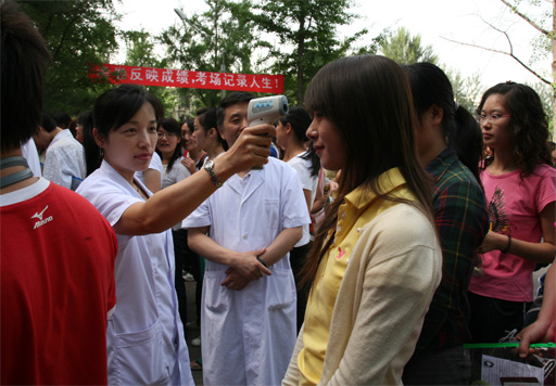校医院医务人员对考生体温进行抽检