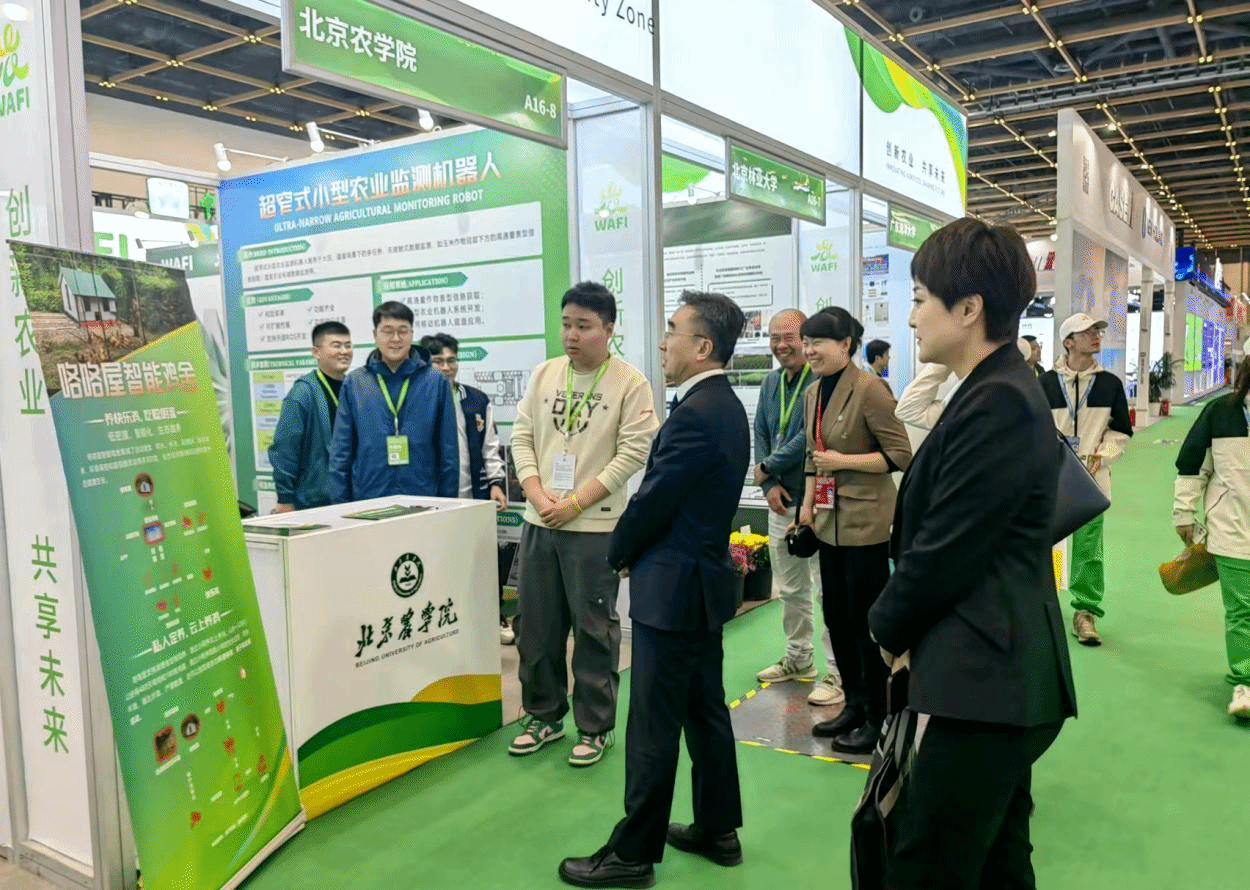 赵锋来到世界农业科技创新大会成果展世俱杯展区,与师生深入交流,勉励大家聚焦国家战略需求开展科研和社会服务,持续产出一批高水平科技成果,为全面推进乡村振兴和农业农村现代化建设作出更大贡献。