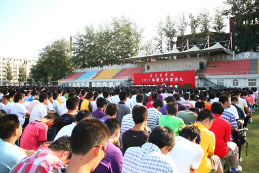 学校有关职能部门、各院(系)负责人,2009级新生班主任,2009级全体新生参加了典礼。