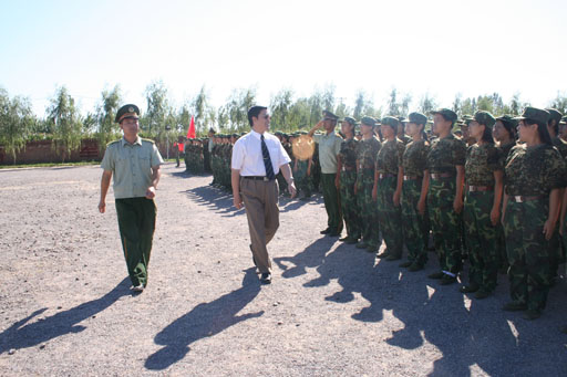 院长王有年在邵田团长的陪同下,检阅了这支由1800余名学生组成的军训队伍。