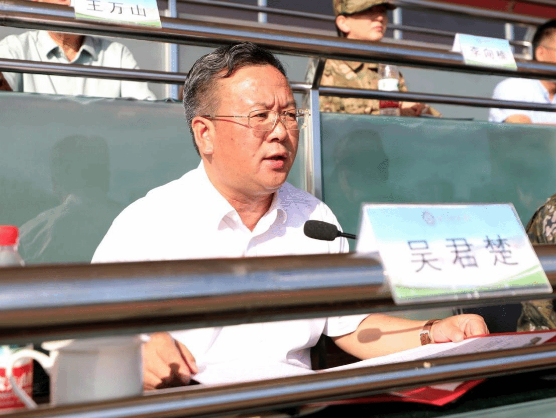 吴君楚代表学校向承训的武警北京市总队某部的全体官兵致以诚挚的感谢,向参加军训的全体同学、全体指战员致以真诚的问候。