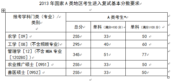 2013年全日制硕士研究生进入复试基本分数:各学院根据自身情况进行划线,复试最低分数线不低于相应专业A类地区考生进入复试基本分数要求,并保证差额复试比例为120﹪—150﹪。