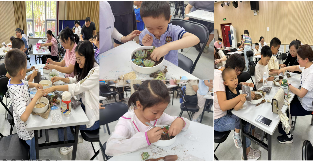 为引领孩子们了解植物知识,培养孩子们对“三农”的感情,校工会在“六一”国际儿童节当天举办“我是小小园艺师”多肉微景观种植活动。王树涛老师介绍了多肉植物的种植方法、生长特性、养护要点,孩子们迫不及待地在多肉植物材料包中选出喜爱的品种并把它们种植到花盆中,用创意和想象力打造出独一无二的多肉盆栽微景观。