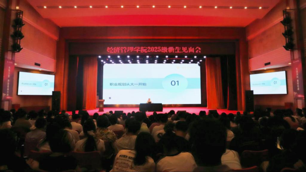 9月6日,经济管理学院召开2025级新生见面会暨军训动员会。全体辅导员、组织员及2025级全体本科新生参加会议,帮助新生快速适应大学生活,明确学业与发展方向,并对即将开展的军训工作进行说明。会上,辅导员团队围绕日常教育管理、奖勤助贷政策、心理健康调适、第二课堂学分认定、生涯规划指导、征兵工作和谨防诈骗等内容进行讲解,为新生提供政策认知与需求支持。