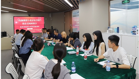 宏源期货总经理王刚对学院国际经济贸易专业毕业生张亚楠、孙晓萌、雷惠芬、王涵玥的出色在岗表现以及学校的人才培养质量给予充分肯定,希望进一步对接人才供需情况,开展校企协同育人。刘芳结合人才培养“专项班”建设、毕业生实习就业与公司负责人进行了沟通交流。双方就共同筹建大宗农产品价格研究中心交换意见,希望通过共建提升大宗涉农商品行情研究能力,助力农产品产业链更好应对商品波动风险,实现日常教学、研究实践和成果应用的有效融合,全面助推学校人才培养质量,有效提升学生行业就业竞争力。