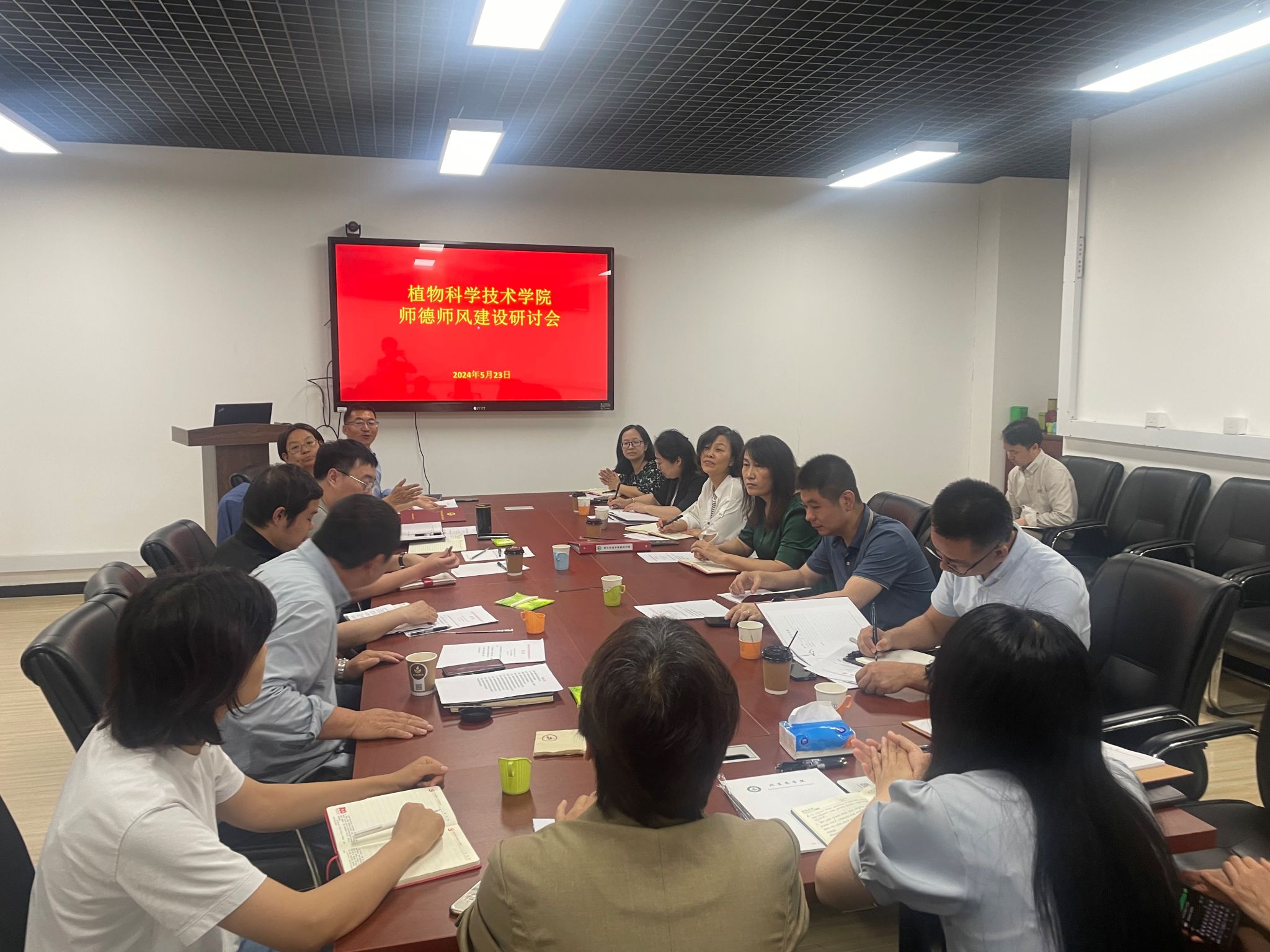 5月23日,植物科学技术学院召开师德师风建设研讨会。学院领导班子成员、全体党支部书记和教工党支部委员参会,研讨会由党委副书记、副院长张卿主持。