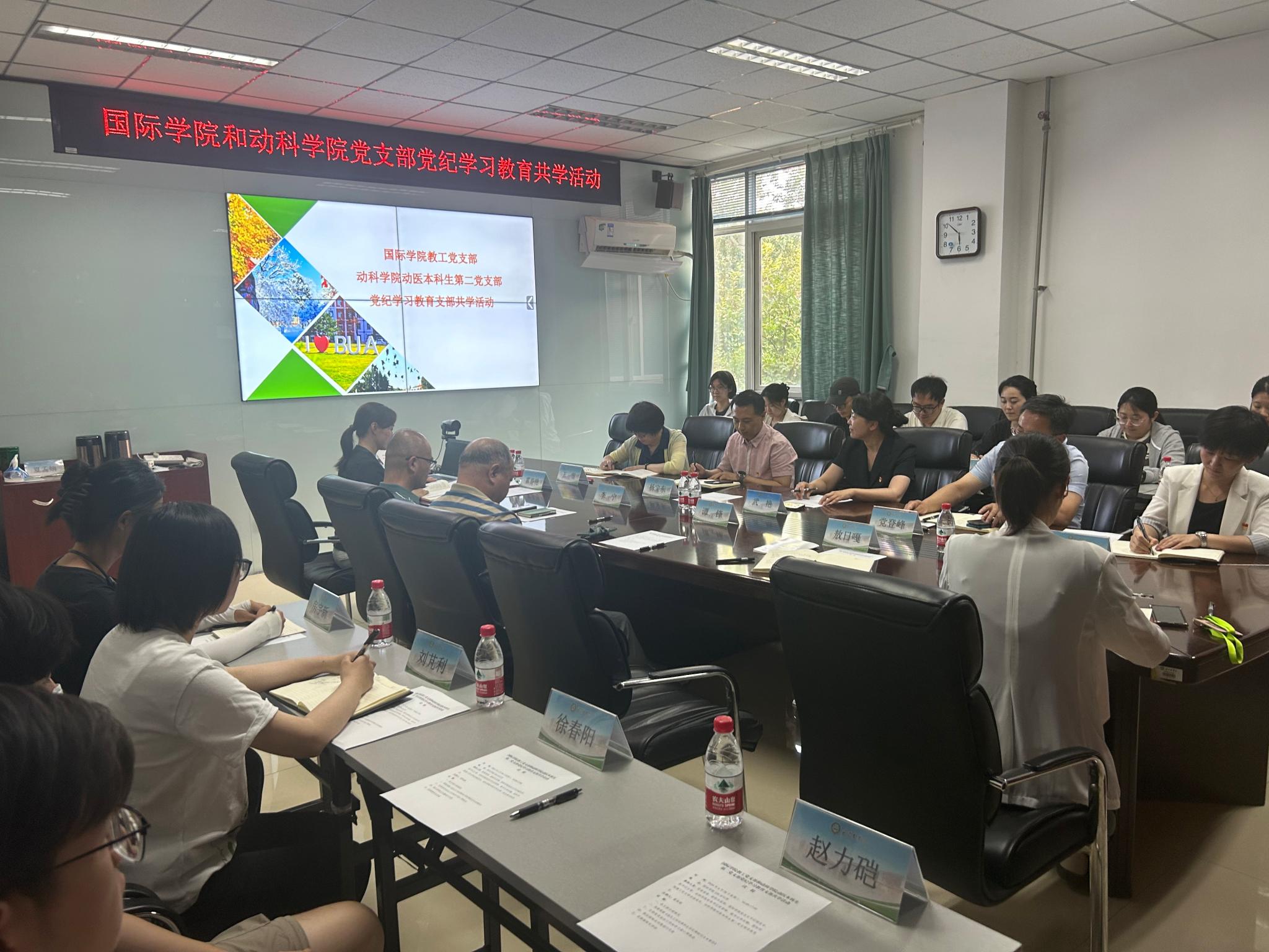 6月26日下午,国际学院教工党支部与动科学院动医本科生第二党支部联合开展主题党日活动,重点围绕工作纪律和生活纪律进行研读交流。校党委常委、副院长武艳出席并讲话。活动由国际学院教工党支部书记霍春艳主持。