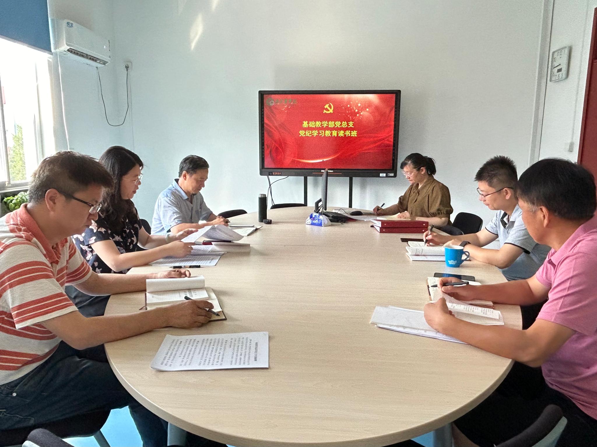 为进一步推动党纪学习教育走深走实,不断增强党员干部纪律意识、提高党性修养,6月17日上午,基础教学部党总支党纪学习教育读书班开展第五次集中学习,集体学习习近平总书记关于全面加强党的纪律建设的重要论述。